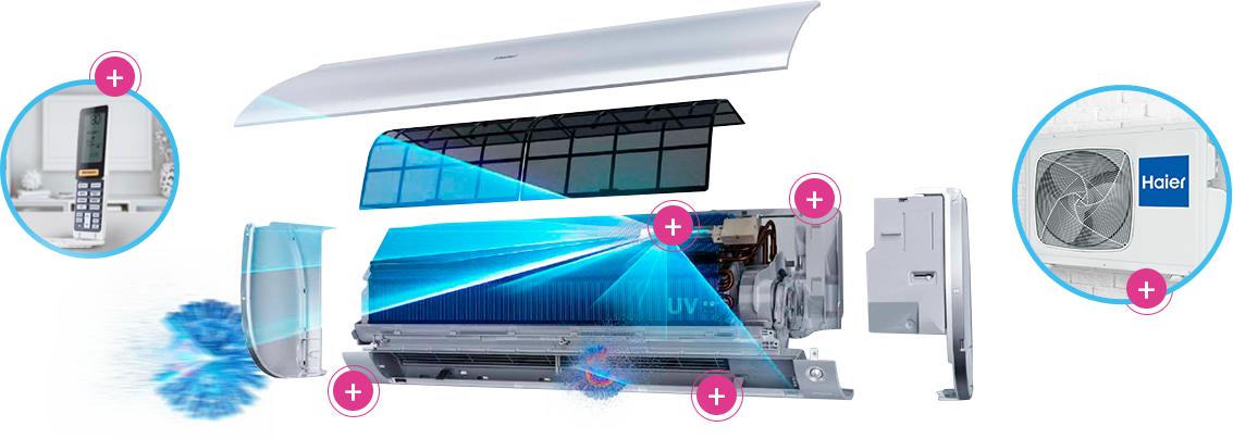 Антибактериальный фильтр Haier совмещает в себе эффективность трех фильтров: антиаллергенного, антивирусного и антибактериального. В сочетании с УФ-лампой воздух в комнате - максимально чистый